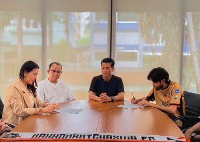 ในการเซ็นต์สัญญาครั้งนี้ มีนายเทวัญ ลิปตพัลลภ ประธานบริหารสโมสรฯ ,เลดี้น้ำ อัญรินทร์ วงศ์อัครพัฒนา รองประธานบริหารฯ โค้ชโจ ธีระศักดิ์ โพธิ์อ้น หัวหน้าผู้ฝึกสอน , นายเมธี ทวีกุลกาจญ์ ผู้จัดการทีม เป็นสักขีพยาน