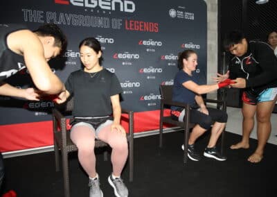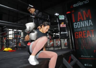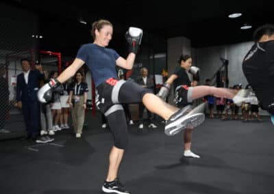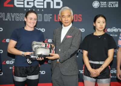 ต่อมาในช่วงบ่าย นายสุวัจน์ ได้ต้อนรับ 2 นักหวดสาวคนดัง อย่าง ทามารา ซีดานเซ็ก จากสโลวีเนีย มือ 98 ของโลก และ นาโอะ ฮิบิโนะ จากญี่ปุ่น มืออันดับ 138 ของโลก มาเรียนศิลปะป้องกันตัวมวยไทย ณ เดอะ เลนเจนด์ อารีน่า หัวหิน ได้เรียนรู้การคาดเชือกก่อนสวมนวมและฝึกซ้อมมวยไทย
