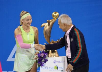 นายสุวัจน์ ลิปตพัลลภ อดีตรองนายกรัฐมนตรี และนายกกิตติมศักดิ์สมาคมกีฬาลอนเทนนิสแห่งประเทศไทย ในพระบรมราชูปถัมภ์ ในฐานะประธานที่ปรึกษาจัดการแข่งขันฯ เป็นประธานในพิธีปิดการแข่งขันเทนนิสอาชีพหญิงรายการใหญ่ที่สุดของอาเซียน ดับเบิลยูทีเอ 250 รายการ “แอลไลด์ ไทยแลนด์ โอเพ่น 2024 พรีเซนเต็ด บาย แคล-คอมพ์” ชิงเงินรางวัลรวม 267,082 ดอลลาร์สหรัฐ หรือประมาณเกือบ 10 ล้านบาท ณ เซ็นเตอร์คอร์ท อารีน่า หัวหิน จ.ประจวบคีรีขันธ์ เมื่อวันที่ 22 ก.ย. 2567