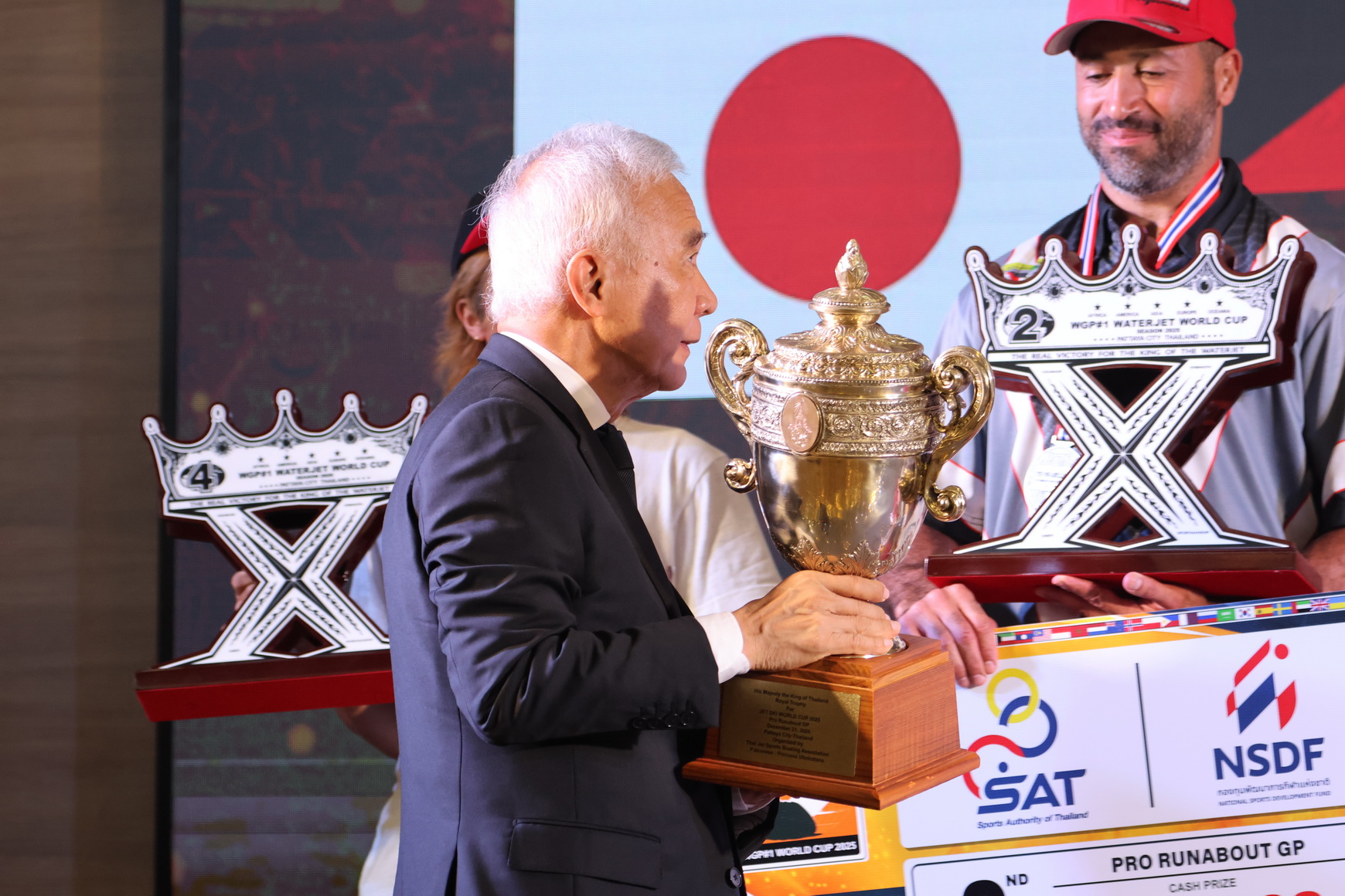เมื่อวันที่ 21 ธันวาคม 2568 ณ หาดจอมเทียน เมืองพัทยา จังหวัดชลบุรี นายสุวัจน์ ลิปตพัลลภ อดีตรองนายกรัฐมนตรี ในฐานะประธานอำนวยการจัดการแข่งขัน WGP#1 เป็นประธานในพิธีมอบถ้วยรางวัลการแข่งขันเจ็ตสกีชิงแชมป์โลก รายการ “Thai Airways International WGP#1 Waterjet World Cup 2025” ชิงถ้วยพระราชทานจากพระบาทสมเด็จพระเจ้าอยู่หัว หลังเสร็จสิ้นการแข่งขันอย่างยิ่งใหญ่