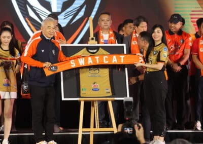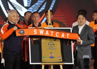 (ประเทศไทย) จำกัด กล่าวว่ามาสด้า สนับสนุนสวาทแคท ตั้งแต่วันแรกจนถึงวันนี้นับเป็น 12 ปี เต็มผ่านประสบการณ์มากมายร่วมกันทั้งสุขและเศร้า ผ่านอุปสรรคมานานนับประการ แต่สิ่งที่เกิดขึ้นไม่ได้ทําให้ความรัก และความผูกพันธ์ ระหว่างเราเปลี่ยนแปลงไปเลยแม้แต่น้อย นี้ก็เช่นกันมาสด้า ยังคงสนับสนุนทีมที่เรารักเพื่อให้ทีมของเราก้าวสู่เป้าหมายที่เราตั้งใจไว้ ผมมั่นใจว่า ทั้งโค้ช นักเตะ ผู้บริหารสโมสร รวมถึงแฟนๆ ทุกท่านต่างมีใจสู้ไม่ถอย เราไม่ได้มุ่งหวังให้ชัยชนะเท่านั้น แต่เราต้องพัฒนาและยกระดับฟุตบอลไทย ส่งเสริมทักษะของนักกีฬาให้โดดเด่นยิ่งขึ้นนี่คือ สิ่งสําคัญและเป็นเป้าหมายร่วมกันที่ทําให้พวกเราทุกคนทุกภาคส่วนมารวมตัวกันในวันนี้