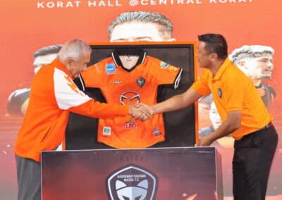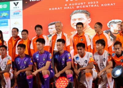 ทั้งนี้ ไฮไลท์สำคัญในงาน คือการเปิดตัวนักฟุตบอล “สวาทแคท” ที่เตรียมสู้ศึก ไทยลีก 2 ฤดูกาล 2023-24 พร้อมกับชุดแข่งขันใหม่จากแบรนด์ “VOLT” ออกมาอวดโฉมอย่างเป็นทางการ ภายใต้คอนเซป ผ้าลายไทย ผ้าไหมปักธงชัย ทั้งลายตัวเอส สีขาว ลายไทยประยุกต์ ให้สมกับเป็นเมืองย่าโม พร้อมกลองเชียร์ และนักร้องแรปเปอร์ชื่อดังเมืองโคราช “สิงห์น้อย แรปเปอร์”แชมป์รายการ Rap over set มาสร้างสีสันให้ทีมสวาทแคท