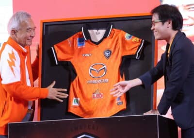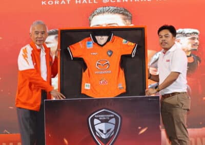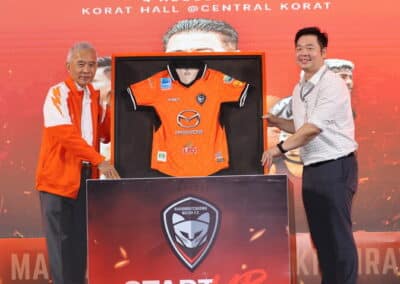 มร.ทาดาชิ มิอุระ ประธานบริหาร บริษัท มาสด้า เซลส์ (ประเทศไทย) จำกัด กล่าวว่า มาสด้า มอเตอร์ คอร์ปอเรชั่น และ มาสด้า เซลส์ ประเทศไทย ขอบคุณสโมสรนครราชสีมา มาสด้า เอฟซี ที่เปิดโอกาสให้มาสด้าเข้ามาสนับสนุนสโมสรฯ ซึ่งเมื่อรวมฤดูกาล 2023-2024 ก็นับได้ว่าเป็นเวลา 11 ปีแล้ว ที่มาสด้าได้เข้ามาเป็นพันธมิตร เพื่อสนับสนุนสวาทแคท ซึ่งไม่ว่าจะเผชิญกับความยากลำบากเพียงใด ก็ได้เห็นจิตวิญญาณการต่อสู้ของแฟนบอลสวาทแคท ที่สนับสนุนทีมเสมอมา และครั้งนี้ก็เป็นฤดูกาลที่สำคัญ ที่สวาทแคทจะต้องเดินหน้าสู่เป้าหมายคือเลื่อนชั้นขึ้นไทยลีกให้ได้ หวังว่าสวาทแคทจะประสบความสำเร็จตามเป้าหมายที่ตั้งไว้