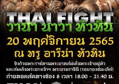 นายสุวัจน์ กล่าวว่าการแข่งขันมวยไทยโลก “THAI FIGHT “ได้จัดขึ้นติดต่อกันมาเป็นปีที่ 12 เพื่ออนุรักษ์ศิลปะการต่อสู้มวยไทยและสร้างความภาคภูมิใจให้กับพี่น้องประชาชนในวัฒนธรรมการต่อสู้ที่เป็นที่รู้จักทั่วโลก ในการจัดการแข่งขันมวยไทยโลก “THAI FIGHT วานา นาวา หัวหิน” ในครั้งนี้ เป็นการแข่งขันรอบรองชนะเลิศ สำหรับรอบชิงชนะเลิศจะจัดขึ้นในวันที่ 24 ธันวาคม 2565 ณลานหน้าอาคารนิมิบุตร สนามกีฬาแห่งชาติ กรุงเทพมหานคร