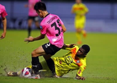 เกมนี้ “พญาไก่ชน” อาศัยทีเด็ดจากลูกเปิดด้านข้างเล่นงาน “สวาทแคท” จนได้มา 2 ประตู เริ่มจากนาทีที่ 38 เลอสันต์ เทียมราช ครอสบอลจากฝั่งขวาให้ แฮมิลตัน โซอาเรส ขึ้นโขกเข้าไปเป็น 1-0 ก่อนที่ ลิดอร์ โคเฮน ตัวรุกชาวอิสราเอลจะหยอดจากด้านซ้ายเข้ากลางให้ แฮมิลตัน โซอาเรส เจ้าเก่ากระโดดแปเสียบเสาแรกเป็น 2-0