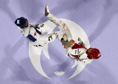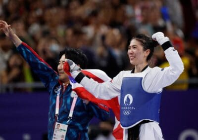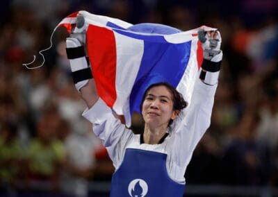 การแข่งขันกีฬาเทควันโด รุ่นน้ำหนัก 49 กก.หญิง รอบชิงชนะเลิศย “เทนนิส-พาณิภัค วงศ์พัฒนกิจ” แชมป์เก่าและเต็ง 1 ของรายการ ขวัญใจชาวไทย พบกับ “กัว ชิง” มือ 6 ของรายการ จากจีน