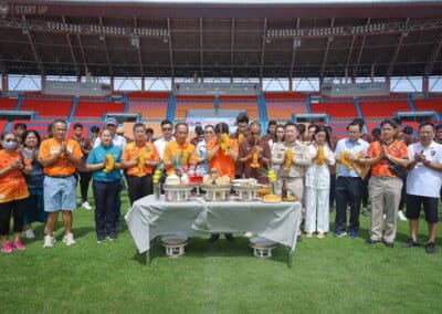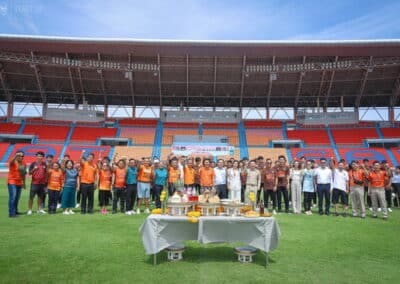 นายวัชรพล โตมรศักดิ์ ประธานสโมสร, นายอรัญ พันธุมจินดา รองประธานฝ่ายบริหาร, นางสาวอัญรินทร์ วงศ์อัครพัฒนา รองประธานฝ่ายหารายได้, นายศุภรัศมิ์ ตัณฑเศรณีวัฒน์ ผู้อำนวยการสโมสร, โค้ชโจ” ธีระศักดิ์ โพธิ์อ้น หัวหน้าผู้ฝึกสอน ทีมนักเตะสวาทแคท และแขกผู้มีเกียรติ ร่วมทำบุญสนามและเลี้ยงพระเพลน ที่สนามกีฬาเฉลิมพระเกียรติ 80 เพื่อเป็นศิริมงคลในการเตะนัดแรกในวันที่ 12 สิงหาคมนี้ ในโปรแกรมการแข่งขันนัดเปิดฤดูกาล