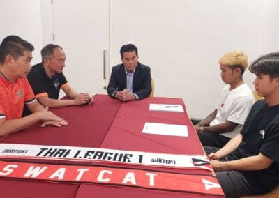 นายเทวัญ ลิปตพัลลภ ประธานบริหารสโมสรฯ กล่าวว่า ต้องขอบคุณ “บุ๊ค” สมเกียรติ คุณมี ที่มีส่วนช่วยให้ทีมสวาดแคทกลับมาเล่นในไทยลีกอีกครั้ง และเรายังคว้าแชมป์ไทยลีก2 ได้อีกด้วยส่วนฤดูกาลใหม่ในเวทีไทยลีก 1 นี้หวังว่า สมเกียรติ จะโชว์ผลงานได้ดีและเป็นกำลังสำคัญของทีมและเป็นตัวอย่างที่ดีให้กับเยาวชน เพราะมีเด็กและเยาวชนหลายคนยกให้ สมเกียรติ เป็นไอดอลของเขา และขอต้อนรับแบ๊คซ้ายคนใหม่ ธนิศร ไพบูลย์กิจเจริญ จากบุรีรัมย์ยูไนเต็ด ซึ่งเป็นเด็กหนุ่มฝีเท้าดีอีกคนและเรามั่นใจว่า ธนิศร จะทำผลงานกับทีมสวาทแคทได้ดีเช่นเดียวกัน ส่วนนักเตะต่างชาติจะมีการเสริมทัพเกือบครบทุกตำแหน่งภายในสิ้นเดือนมิถุนายน 2567 นี้ โดยเป้าหมายของทีมสวาดแคทในฤดูกาลใหม่นี้ขอเลขตัวเดียวหรือไม่เกินลำดับที่ 1-5 นายเทวัญฯ กล่าว