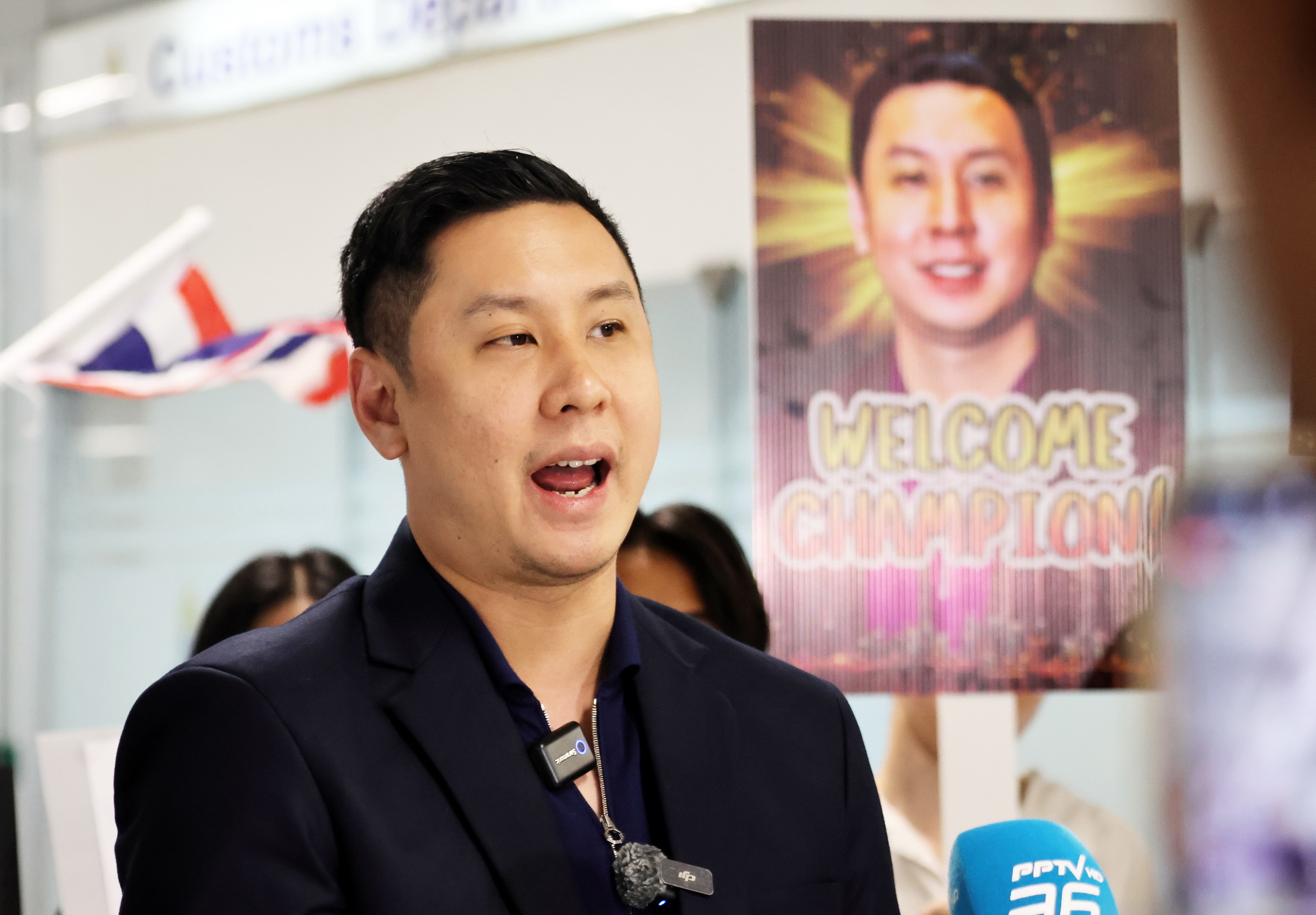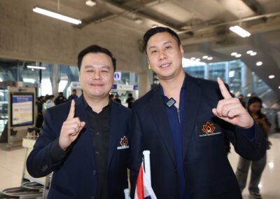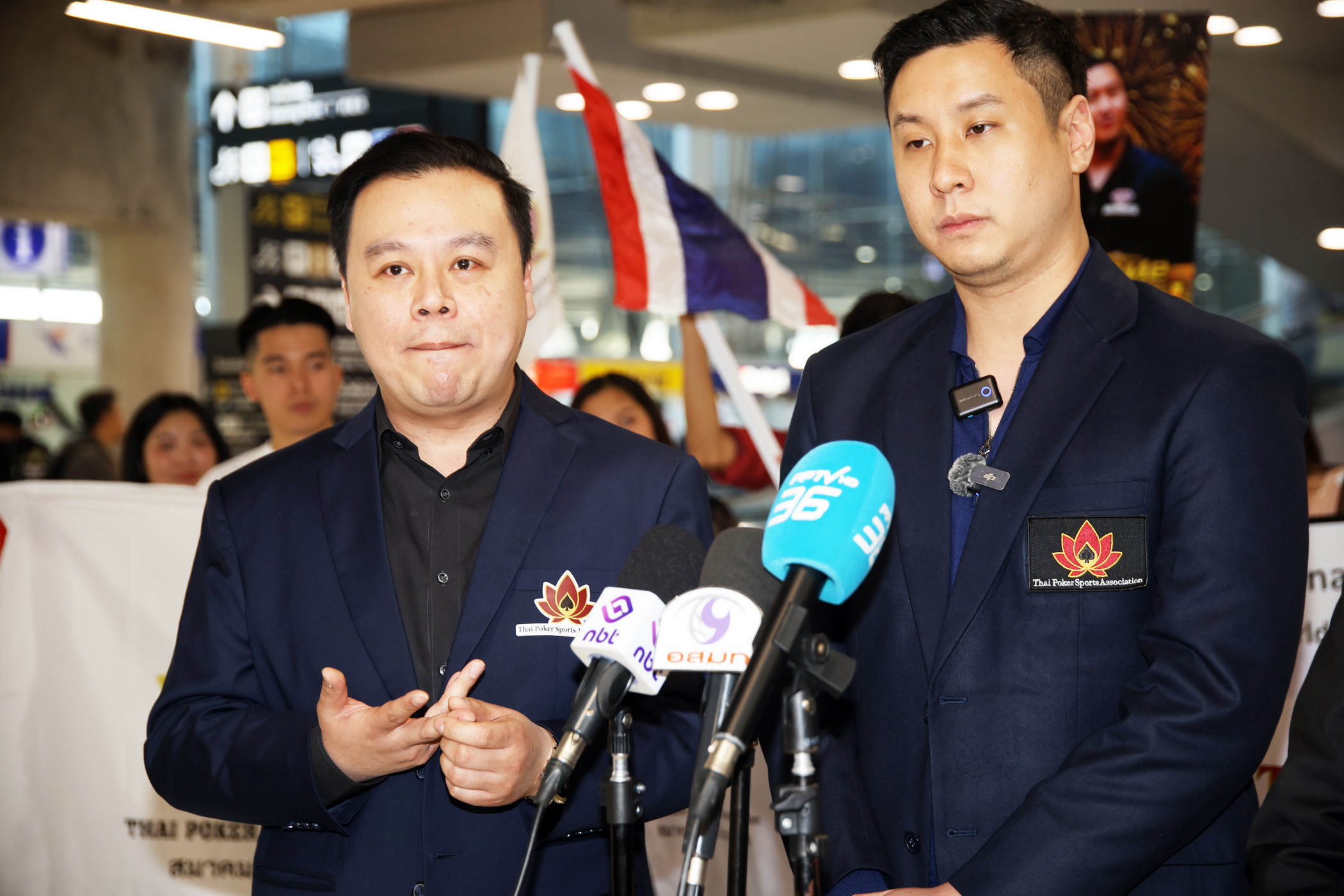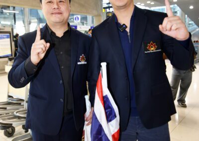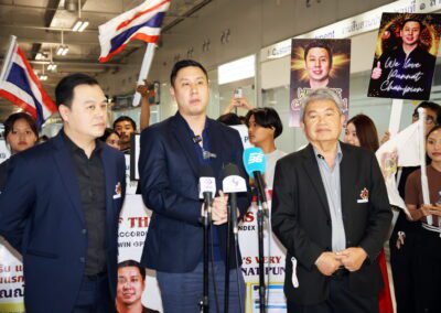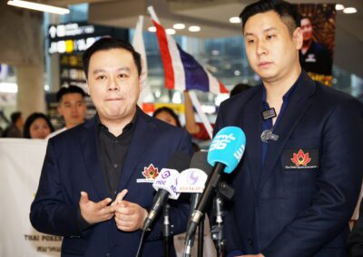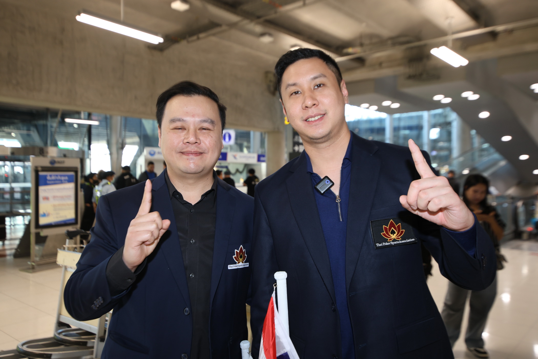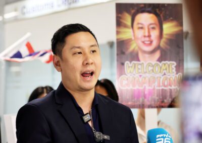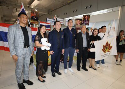 Mr. Thana Julpansak , President of the Thailand Poker Sports Association, together with Mr. Jitnarat Nawarat, Secretary-General of the Association, and the association’s executive committee, traveled to warmly welcome “Pro Punnat” Mr.Punnat Punsri , the world’s number one poker player and the first from Thailand and Asia, upon his arrival back in Thailand. A large group of fans gathered to greet him at Suvarnabhumi International Airport on January 5, 2025.