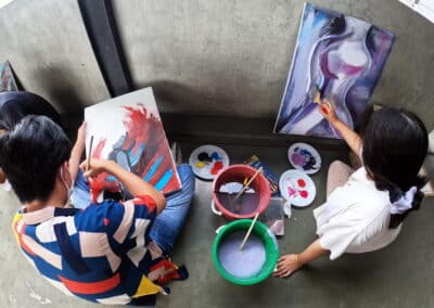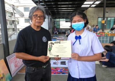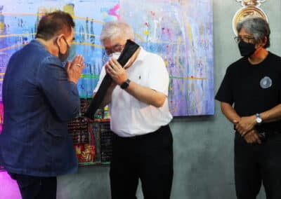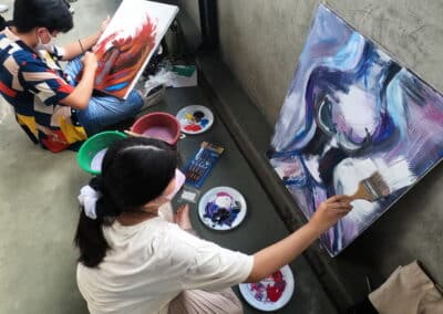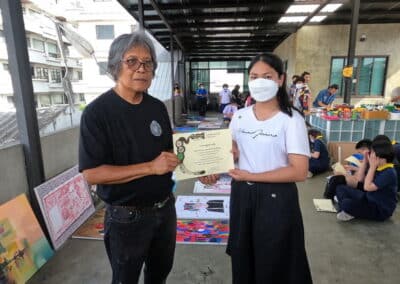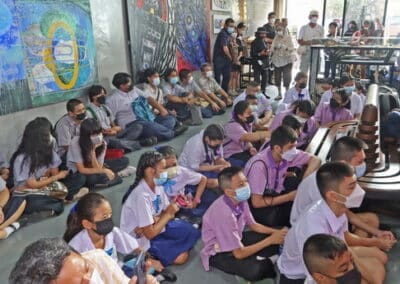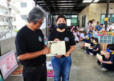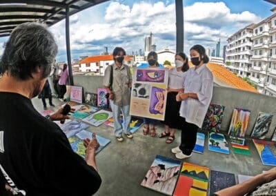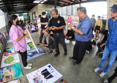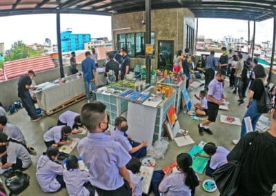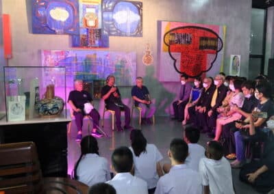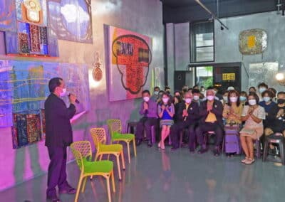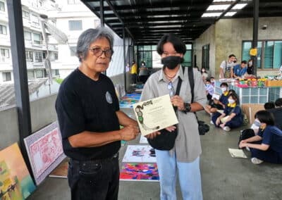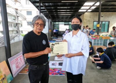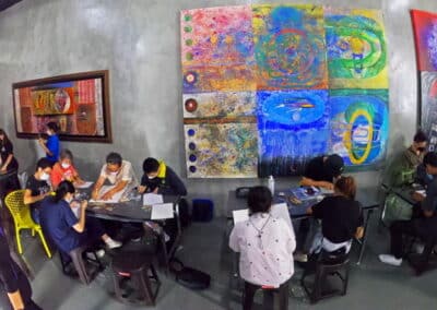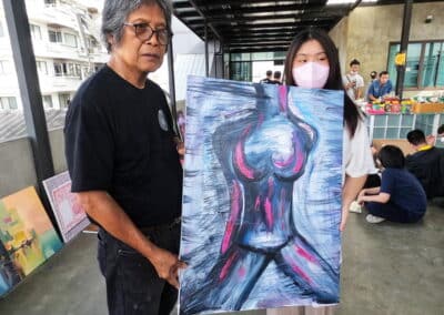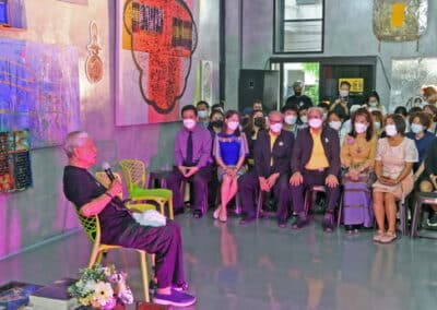 อ.กมล กล่าวว่า โครงการนี้เราเริ่มต้นกันที่จังหวัดเชียงรายกับอาจารย์ประหยัด พงษ์ดำ ศิลปินแห่งชาติ สาขาสาขาทัศนศิลป์ (ภาพพิมพ์) ปี 2541 ซึ่งทำต่อเนื่องเป็นระยะเวลาเกือบ 16-17 ปี จนมาถึงช่วงโควิด 2-3 ปี ผมอยู่อเมริกาก็ไม่มีใครทำ ซึ่งโครงการนี้เราจะเอาเด็กนักเรียนในเขตและท้องถิ่น ซึ่งครูอาจารย์ ได้พาเด็กๆ มาร่วมกัน และอีกโครงการคือเอาเด็กมาคัดเด็ก 70 คนจากทั่วประเทศมาที่หออัครศิลปิน 7 วัน มาทำ workshop และก็คัดเด็ก 10 คนไปอเมริกา เพื่อไปต่อยอดที่อเมริกา ซึ่งเป็นงานที่ทำต่อเนื่อง 10 กว่าปี