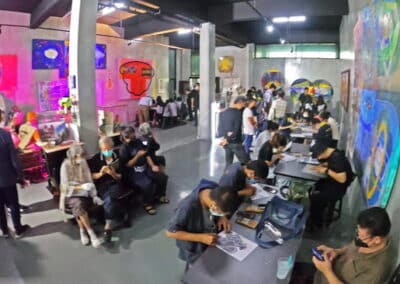 ทั้งนี้ ผู้สื่อข่าวรายงานว่าบรรยากาศในงานคึกคักไปด้วยเหล่าศิลปินมากมาย เริ่มจาก อ.ธนิสร์ ศรีกลิ่น ศิลปินแห่งชาติ สาขาศิลปะการแสดง ประจำปี พ.ศ. 2559 มาเป่าขลุ่ย ขับกล่อมกับบทเพลงจาก “ชรินทร์ นันทนาคร”ศิลปินแห่งชาติ ประจำปี พ.ศ. 2541 เรียกว่า รวมพลศิลปินแห่งชาติ ในขณะที่เยาวชนนักเรียนผู้เข้าร่วมโครงการจำนวนมากทั้งจากโรงเรียนในพื้นที่กรุงเทพมหานคร และเยาวชนจากต่างจังหวัด อาทิ ภูเก็ต,สตู,ตรัง ต่างสนใจงานศิลปะทั้ง 4 ฐาน สร้างสรรค์ผลงานศิลปะได้งดงามมาก เป็นอีกหนึ่ง “ซอฟท์พาวเวอร์” เมือไทยที่กำลังมาแรง