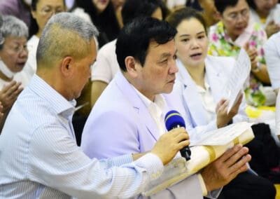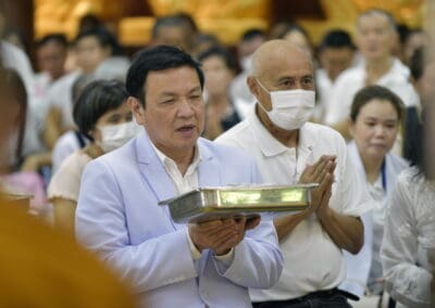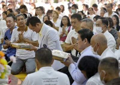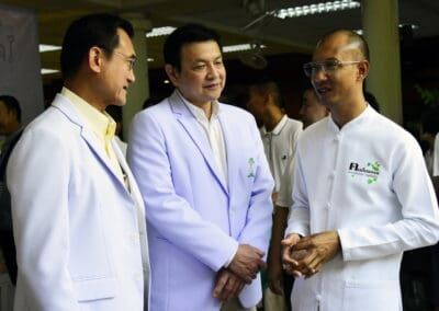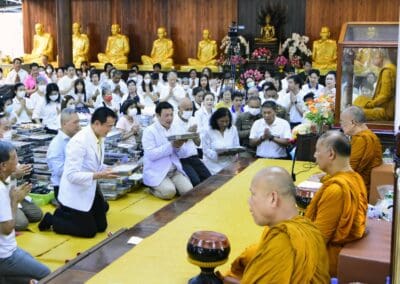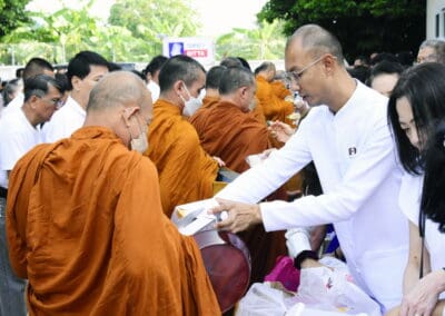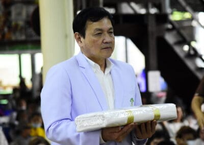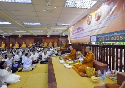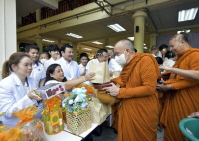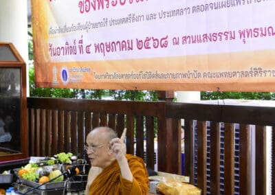 ศ.นพ.อภิชาติ อัศวมงคลกุล คณบดีคณะแพทยศาสตร์ศิริราชพยาบาล ม.มหิดล กล่าวว่าวันนี้เราอยู่ที่ศูนย์แสงธรรม ศรัทธาประชาชนที่เข้ามากราบ หลวงพ่ออินทร์ถวาย เจ้าคุณหลวงพ่ออนิลมาน หลวงพ่อสุธรรม และหลวงพ่อผู้ใหญ่ทุกๆ ท่าน ซึ่งวันนี้มีความพิเศษ คือ เราอยากจะมาบอกบุญเพื่อที่จะนำเงินไปช่วยผู้ป่วยที่ประเทศศรีลังกา ผู้ป่วยที่ด้อยโอกาสเรื่องเข่าเทียม โดยเราจะพาทีมแพทย์ศิริราชไปช่วยที่เมืองแคนดี้ ในเดือนพฤศจิกายนนี้ ซึ่งเป็นโครงการก้าวแรกพระบรมศาสดา ครั้งที่ 3 ต่อเนื่องจากครั้งแรก ที่ประเทศเนปาล ครั้งที่สอง ที่ประเทศภูฎาน