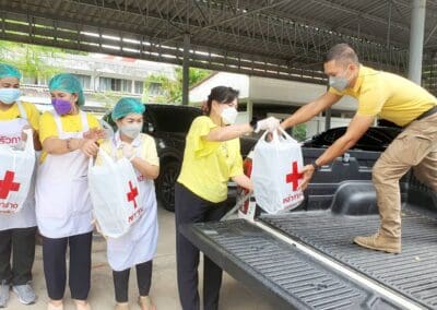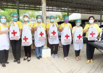 “ครัวกาชาดแบ่งปัน” ท่านนายกเหล่ากาชาดฯ ขอขอบพระคุณ คุณอาริยา เทียนทอง “อาริยา ปลาส้ม” ตลาดย่าโม และผู้สนับสนุนอีกหลายๆ หน่วยงาน หลายๆองค์กร สำหรับประกอบอาหารให้ บุคลากรทางการแพทย์ และผู้ยากไร้ ตั้งแต่เดือนเมษายน จนถึงปัจจุบัน