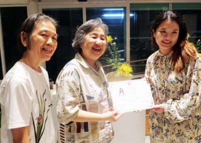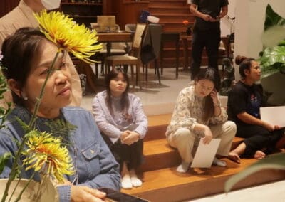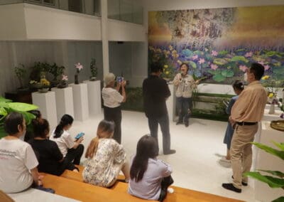 “เพื่ออยากจะสนับสนุนให้ผู้ที่อยากเข้ามาศึกษาหรือชมศิลปะการจัดดอกไม้ด้วยใจ หรือการจัดให้ตัวเราเองนั้นมีตัวตน หรือเข้าใจตัวเองมากขึ้น อันนี้คือ พูดเป็นหลักของธรรม หรือในหลักศาสนา ที่สำคัญ อยากให้เด็กรุ่นหลัง คือ รุ่นแรกแย้มเหมือนดอกไม้แรกแย้ม ได้เข้ามาสัมผัสการเข้าใจธรรมชาติมากขึ้น แล้วเราจะรักมันมากขึ้น แล้วก็จะเป็นมือต่อมือ รุ่นต่อรุ่น คือ ได้รักษา ต่อยอดให้สิ่งที่เป็นธรรมชาติดียิ่งยิ่งขึ้นไป”