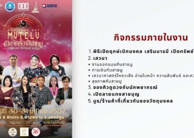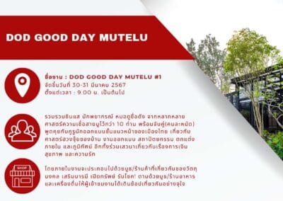 ชื่องาน : DOD GOOD DAY MUTELU #1 จัดขึ้นวันที่ 30-31 มีนาคม 2567 ตั้งแต่เวลา : 9.00 น. เป็นต้นไป