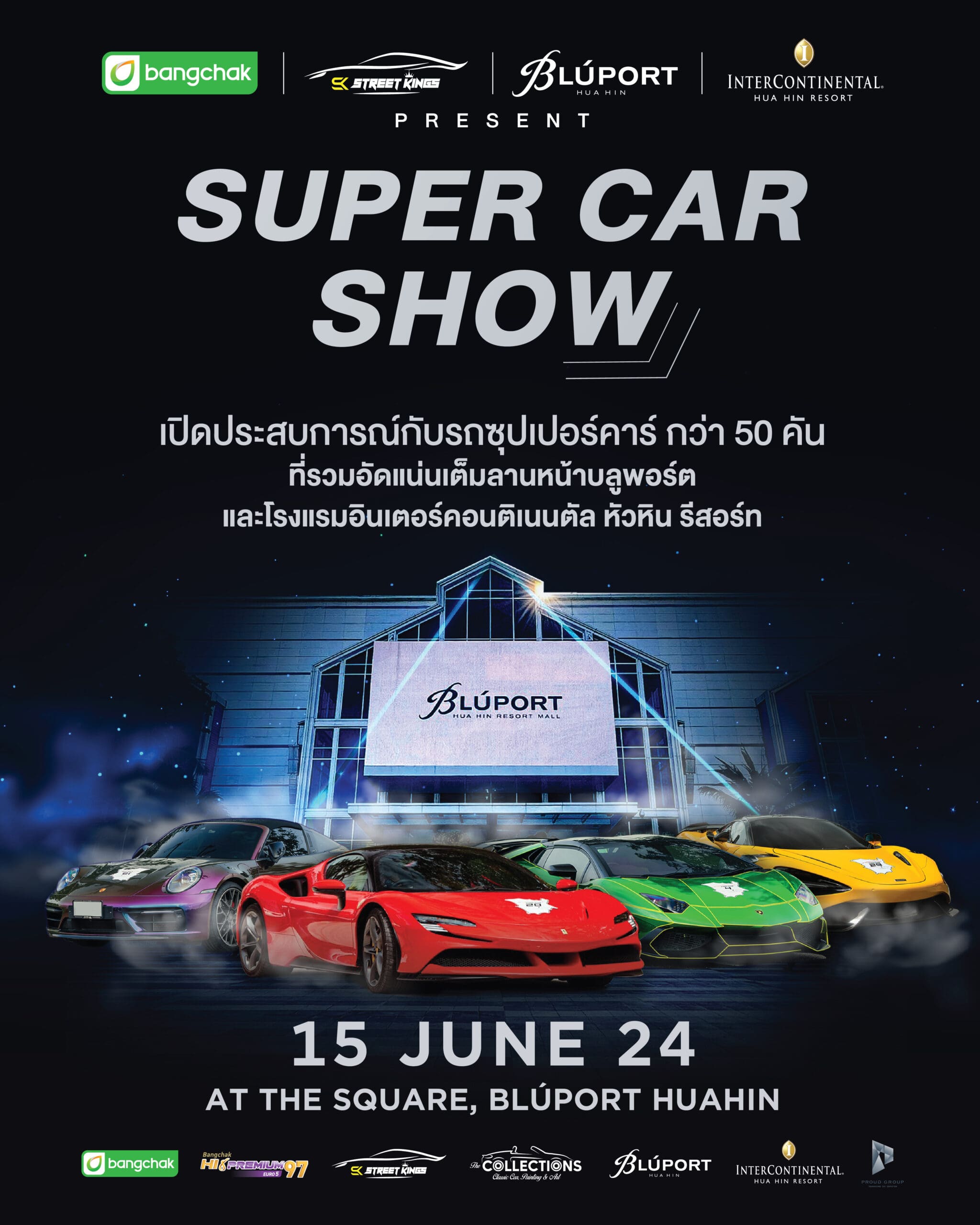 อย่าพลาด! มาเป็นส่วนหนึ่งของปรากฏการณ์ความยิ่งใหญ่ในงาน Super Car Show และสัมผัสประสบการณ์ที่หรูหราและประทับใจไปกับขบวนคาราวานซูเปอร์คาร์จากกลุ่ม Street Kings ในวันที่ 15 มิถุนายน นี้ ที่ลาน เดอะสแควร์ บลูพอร์ต หัวหิน