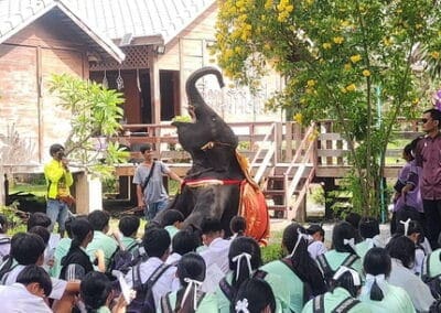 โดยมีควาญช้างพี่อ้วนและคณะโดยเฉพาะน้องช้างพลายเหรียญทอง อายุ 6 ปี เข้าร่วมกิจกรรมด้วยความน่ารัก เป็นการจัดกิจกรรมนอกห้องเรียน ส่งเสริมคุณธรรมผ่านมรดกวัฒนธรรมที่อุทยานสถานีรถไฟสูง ซึ่งเป็นหนึ่งในโคราชจีโอพาร์ค