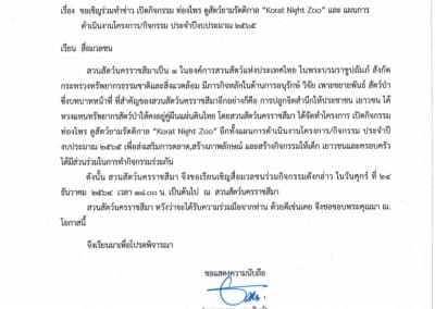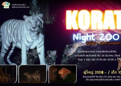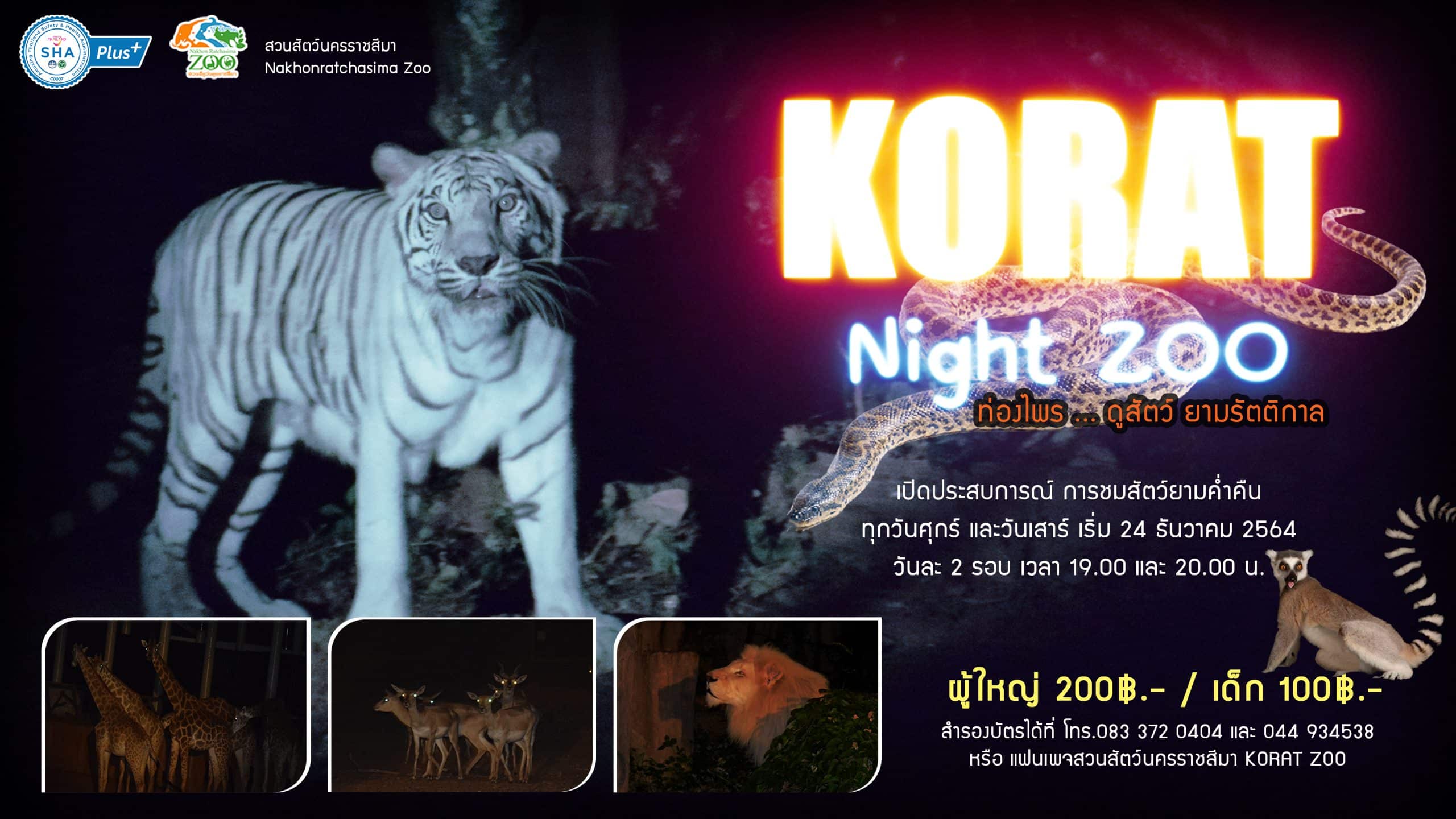 สวนสัตว์นครราชสีมา พร้อมเปิดให้บริการ ชมสัตว์ในเวลากลางคืน ภายในสวนสัตว์นครราชสีมา ในวันที่ 24 ธันวาคม 2564 เป็นต้นไป ภายใต้ชื่อ “ ท่องไพร Night Zoo ดูสัตว์ยามรัตติกาล ”