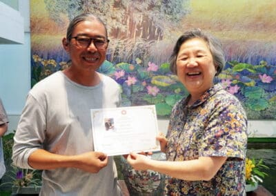 “ขอบคุณ JS Arts Gallery ที่คิดโครงการนี้ขึ้นมา และจะเป็นประโยชน์ต่อไป คนที่มาฝึกก็มีหลากหลายอาชีพ มีพยาบาลที่ สามารถที่จะนําเอาไปใช้กับผู้ป่วย คนไข้ในโรงพยาบาล เพราะวิธีการจัดแบบโคริงกะ ทำให้เราหาความสุขได้ง่าย จากดอกไม้ จากใบไม้รอบตัว ถือว่าเป็นโครงการที่ดีมาก”