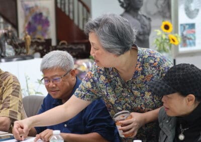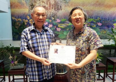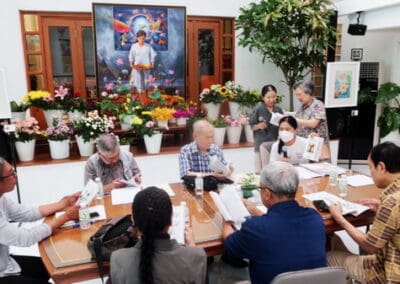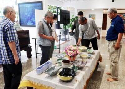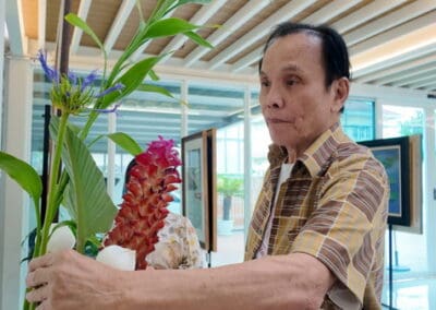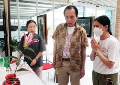ด้าน คุณทัชชะพงศ์ ประเวศวรารัตน์ อดีตประธานกรรมการบริษัท ซีฟโก้ จำกัด (มหาชน) และนักสะสมงานศิลปะ กล่าวว่ามีความสุข ทั้งอบอุ่น เพราะว่าทุกคนที่อยู่ที่นี้ ถึงแม้ไม่ได้เจอกันมาตั้งนาน เพิ่งจะมาเจอกันก็รู้สึกอบอุ่น เป็นกันเองมาก สถานที่นี่ดีเยี่ยม โดยเฉพาะดอกไม้ต่างๆ ที่เราได้จัดเราได้ความรู้ ถึงแม้เราเคยจัดมาแล้ว แต่มีขั้นตอนวิธีการ และดอกไม้หลากหลายชนิด แจกันสวยงามมาก ทุกอย่างที่ทําทุกสเต็ป มันให้ความคิด ว่าเราต้องดูผลงานของเราว่าเป็นยังไงบ้าง คือ ทุกครั้งที่ทํามา มันให้ความรู้สึกถึงจิตใจของเรา จัดออกมาแล้ว ผลมันสะท้อนกับเราเป็นยังไง คือ ตนจะเป็นคนที่ชอบสื่อกับสิ่งต่างๆ เห็นมันมีชีวิต มันมีมิติ มีความสุขมากโดยเฉพาะบรรยากาศที่นี้