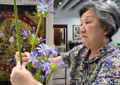 การพิจารณาเพื่อให้เห็นความงามของดอกไม้กับวิธีการทั้งหมดแล้วกระบวนการในการจัดดอกไม้ มันทําให้เราได้มีวิธีคิด แล้วก็มีความสุขกับการทํางาน