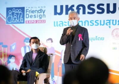 โดย คุณสุวัจน์ ลิปตพัลลภ ได้ขึ้นกล่าวบรรยายพิเศษถึงมุมมองเรื่องธุรกิจสุขภาพ และการเท่องเที่ยวเพื่อคนทั้งมวล กับโอกาสของประเทศาติในเวทีโลก เมื่อวันเสาร์ที่ 12 กุมภาพันธ์ ณ เวทีกลาง ภายในงาน Thailand Friendly Design Expo 2022 ว่า การพัฒนาประเทศ ทุกคนต้องได้รับโอกาสและความเสมอภาคความเท่าเทียมกัน ผมชอบคำว่า “เราจะไม่ทิ้งใครไว้ข้างหลัง” ฉะนั้น เราจะพัฒนาสิ่งไหนเราต้องคิดเหมือนๆกัน ทุกคนต้องได้รับโอกาสเท่าเทียมกัน ไม่ว่าจะเป็นคนรวย คนจน คนปกติ หรือคนที่ขาดโอกาส ทุกคนต้องอยู่ในหลักการบนพื้นฐานความเสมอภาคที่เท่าเทียมกัน ถ้าเราทำให้เกิดความเสมอภาคเท่าเทียมกันได้ บ้านเมืองก็จะมีความสงบสุข มีความปรองดองกัน เพราะเรามีความเสมอภาคเท่ากัน เป็นหลักการสำคัญ ถ้าเกิดเราทำได้ ปัญหาความเหลื่อมล้ำในสังคมก็จะลดน้อยลง