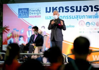 “ยุคนี้ นักท่องเที่ยวทุกคน ไม่่ว่าจะเป็นผู้สูงอายุ ผู้พิการ ก็ล้วนอยากออกมาท่องเที่ยว เรียกได้ว่าเป็นกระแสความนิยมของโลกในยุคปัจจุบัน ดังนั้น ถ้าเราได้มีการออกแบบอารยสถาปัตย์อย่างทั่วถึง มีการจัดทำสิ่งอำนวยความสะดวกต่างๆสำหรับให้บริการผู้สูงวัย ผู้พิการ และคนทั้งมวล เช่น ที่จอดรถ ทางลาด ห้องน้ำสำหรับให้บริการผู้สูงวัย ผู้พิการ และคนทั้งมวล อย่างมีคุณภาพมาตรฐาน เร่งพัฒนาโครงสร้างพื้นฐานต่างๆ ให้พร้อมรองรับคนทั้งมวลได้ ก็จะช่วยกระตุ้นและส่งเสริมธุรกิจการท่องเที่ยวของไทยให้เติบโตอย่างแข็งแรงและยั่งยืน ซึ่งงานมหกรรมอารยสถาปัตย์ฯ ได้สร้างภาพลักษณ์ที่ดีให้กับประเทศ และกระตุ้นให้เกิดการลงทุนในด้านอารยสถาปัตย์มากขึ้น เพื่อพัฒนาธุรกิจการท่องเที่ยวซึ่งเป็นรายได้หลักของประเทศ เพื่อพัฒนาเศรษฐกิจอย่างยั่งยืนต่อไป” อดีตรองนายกรัฐมนตรี กล่าว