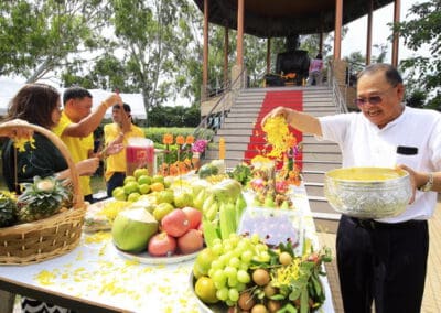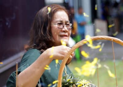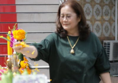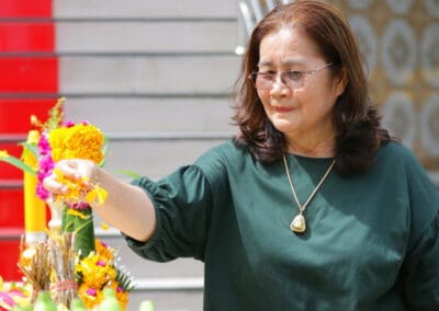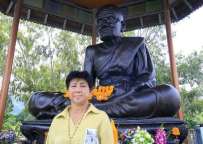 “ครอบครัวเราศรัทธาหลวงปู่แก้วมาก วันนี้ถือโอกาสทำบุญให้หลวงปู่แก้ว และทำบุญกับผู้พิการทางสายตากว่า 90 คนที่เราเชิญมา วันนี้ดีใจมากที่ได้ทำบุญ มีความสุขมากคะ”