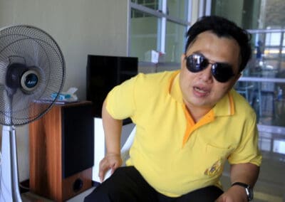 ด้าน “ปิยะ” กตธรรม ศรีสะอาด นายกสมาคมส่งเสริมคุณภาพชีวิตคนตาบอดชลบุรี กล่าวว่า เจ้หอง เป็นคนใจบุญช่วยเหลือคนพิการทางสายตา ด้วยการมาใช้บริการนวดเป็นประจำ ซึ่งเป็นการส่งเสริมรายได้ให้แก่คนตาบอด ที่สำคัญ เจ้หอง เป็นให้การสนับสนุนในการจัดหา จัดสร้างตกแต่งสำนักงานของสมาคมฯ ซึ่งเป็นทั้งบ้านและที่ทำงานของผม เรียกว่า สร้างโอกาสให้ผมกับเพื่อนๆ ได้มีงานทำ มีศูนย์รวมคนตาบอดได้ช่วยเหลือกัน