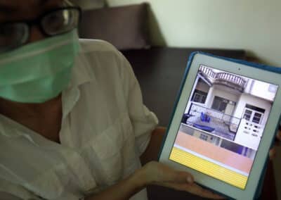 นายปิยะ เล่าว่าบ้านหลังนี้เป็นบ้านมือสองที่ทรุดโทรมมาก เจ้หอง ช่วยหาให้และยังออกแบบตกแต่งให้เหมาะกับผู้พิการทางสายตา แบ่งพื้นที่เป็นห้องนวด ห้องทำงาน ห้องประชุม ห้องนอน ห้องครัว เรียกว่าพื้นที่ทุกตารางเมตรใช้งานได้หมด ที่สำคัญ บ้านหลังนี้ใช้กุญแจดอกเดียว