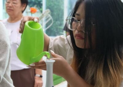 ซึ่งตรงนี้จะเป็นพลังที่จะช่วยสร้างสรรค์สังคมในปัจจุบัน ที่มีความทุกข์ต่างๆ มากมาย ไม่ว่าจะเป็นเรื่องของสุขภาพ เรื่องของปัญหาทางด้านเศรษฐกิจ เรื่องสงคราม ได้หันกลับมามีความสุขอย่างง่ายๆ ในสิ่งที่อยู่ใกล้ตัวเรา ได้รับพลังชีวิตที่อยู่ในดอกไม้ การที่เราได้สัมผัสจับต้องดอกไม้ จะทําให้เรา ได้มีการใช้ประสาทสัมผัสทั้ง 5 รู้สึกว่าตัวเรากับธรรมชาติ มีการเชื่อมโยงเป็นหนึ่งเดียวกัน