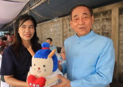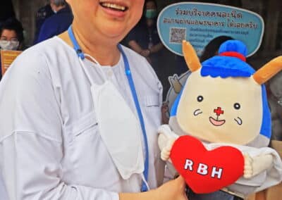 คุณสุจินตนา กล่าวว่างานบุญวันนี้มีสีสัน เปลี่ยนบรรยากาศ มากอด“น้องโม่ง” น่ารัก อบอุ่น มีสื่อสัญลักษณ์ RBH อยู่ใกล้โรงพยาบาลแล้วปลอดภัย