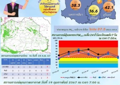 อย่างไรก็ตาม ในช่วงนี้สภาพอากาศร้อนแล้ง ฝุ่นจะฟุ้งกระจายได้ง่าย นายสยาม ศิริมงคล ผู้ว่าราชการจังหวัดฯ ได้สั่งการเน้นย้ำไปยังนายอำเภอทั้ง 32 อำเภอ ให้จับตาและควบคุมการลักลอบเผา โดยออกประกาศคำสั่งจังหวัด ประชาสัมพันธ์ให้ประชาชนและเกษตรกร “ห้ามเผาโดยเด็ดขาด” และให้นายอำเภอตรวจสอบจุดความร้อนในพื้นที่ดูแล วันละ 2 รอบ รอบเช้ากับรอบบ่าย และวอร์รูมลดการเผาในที่โล่ง รายงานให้ทางจังหวัดทราบ โดยหากพบการลักลอบเผาให้รีบลงพื้นที่ตรวจสอบ พร้อมกับประสานองค์กรปกครองส่วนท้องถิ่น ดำเนินการระงับดับไฟให้เร็วที่สุด เพื่อลดปัญหาฝุ่นควันฟุ้งกระจาย ทำให้มลพิษทางอากาศพุ่งสูง เนื่องจากยังมีการลักลอบเผารายวัน พร้อมกันนี้ ให้บูรณาการความร่วมมือกับกำนัน ผู้ใหญ่บ้าน ดำเนินการสืบหาตัวผู้กระทำผิด เพื่อนำมาดำเนินการรับโทษสูงสุดตามกฎหมายโดยเร็ว เพื่อไม่ให้เป็นเยี่ยงย่างสร้างความเสียหายและสร้างความเดือดร้อน จนเกิดผลกระทบต่อประชาชนในภาพรวม .