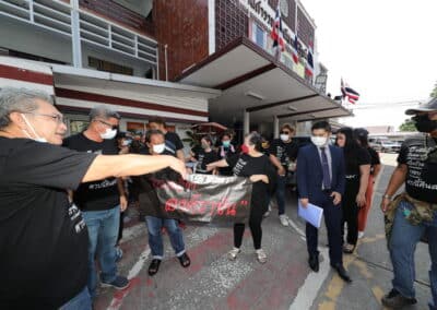 สุดท้าย เกิดกรณีมีการฟ้องว่ามีการปล้นทรัพย์ เป็นตู้ยาม ซึ่งได้รับมอบมาจากเจ้าพนักงานบังคับคดีทั้งกลุ่มอาคารทั้งหมดโดยอ้างว่าเป็นเจ้าของ และอ้างว่ามีการปล้น ป้อมยามพร้อมกับแอร์ที่ติดตั้งที่ป้อมยามนั้น ซึ่งนี้คือ ข้อกล่าวหาในวันนี้ ข้อกล่าวหาแล้วก็มาแจ้งความกับพนักงานสอบสวนว่าเขาครอบครองอยู่ ซึ่งเขาไม่ได้ครอบครอง แต่เป็นการเข้ามาบุกรุกในวันที่ 31 ธันวาคม 2563 รอยต่อวันที่ 1 มกราคม 2564 ของคืนนั้น.