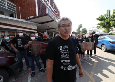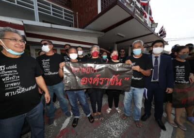 ในขณะที่ตํารวจยังไม่ดําเนินการนั้น เราก็ได้ดําเนินการเพื่อแจ้งบอกว่าให้ออกไปให้ดําเนินการตามกฎหมาย ถ้าคุณคิดว่าคุณมีข้อกฎหมายใดให้ร้องกันที่ศาล ไปต่อสู้กันที่ศาล แต่ในขณะนั้น คู่กรณีพยายามยื้อเราก็แจ้งความบุกรุก ตํารวจก็ไม่กระทําการในฐานะผู้บุกรุกเลย