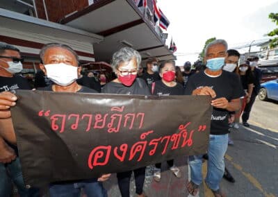 “ในฐานะประชาชนธรรมดาไม่มีอาวุธปืนเหมือนทหาร ไม่ได้มีอาวุธปืนเหมือนตํารวจ แต่เรามีรัฐธรรมนูญ มีองค์กรตํารวจ มีองค์กรอัยการ มีองค์กรศาล เป็นองค์กรของประชาชนไม่ใช่ของใคร ในฐานะประชาชนผู้สุจริตเราขอทวงถามความยุติธรรม ถ้าเราผิดจริง ประหารได้เลย ถ้าเราไม่ผิดจริง ดาบนั้น คืนสนองพวกเขา”