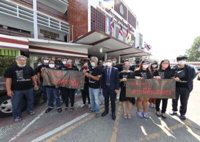 วันที่ 20 ตุลาคม 2565 13.30 น.นายพิชญ์ สนธิ ที่ปรึกษากฎหมายและบริหาร บริษัท ตลาดสุรนารี จำกัด พร้อมผู้ต้องหาทั้ง 28 คน เข้ารายงานตัวต่อเจ้าพนักงานตำรวจ ที่ สถานีตำรวจภูธรเมืองนครราชสีมา
