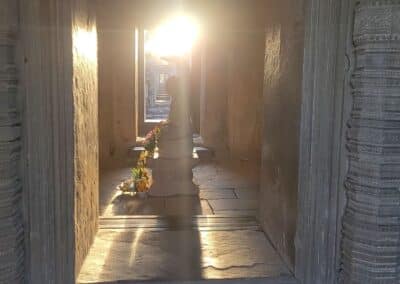 นครราชสีมา-ผู้สื่อข่าวรายงานว่า ที่อุทยานประวัติศาสตร์ปราสาทหินพิมาย จังหวัดนครราชสีมา ได้เกิดปรากฏการณ์ “สุริยาอัสดง” ดวงอาทิตย์ตกลอดซุ้มประตูปราสาทหิน เมื่อช่วงเย็นวานนี้ (6 พฤศจิกายน 2566) เวลาประมาณ 17.00 – 17.15 น. โดยดวงอาทิตย์จะส่องแสงผ่านประตูทางทิศตะวันตก ทั้ง 4 บาน ตั้งฉากกับองค์พระประธานที่ประดิษฐานอยู่ภายในตัวปราสาท ทำให้นักท่องเที่ยวต่างตื่นตาตื่นใจ พากันถ่ายรูปความประทับใจไว้เป็นที่ระลึก ก่อนที่ดวงอาทิตย์จะลับขอบฟ้าไปอย่างรวดเร็ว