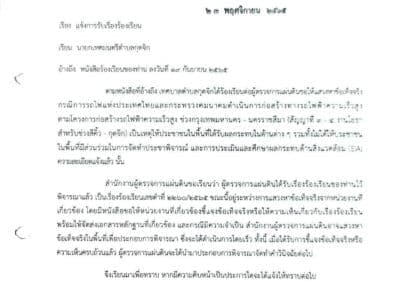 “หลังจากนั้น ได้ส่งหนังสือไปถึงผู้ตรวจการแผ่นดิน เมื่อวันที่ 19 กันยายน 2565 ท่านก็ตอบกลับมาเมื่อวันที่ 23 พฤศจิกายน 2565 ระยะเวลาเกือบสองเดือน ท่านตอบมาว่าทราบเรื่อง กําลังสอบถามข้อเท็จจริง ผมเองก็ไม่นิ่งนอนใจตามตลอด จนล่าสุดมายื่นหนังสือ และตามเรื่องอีกครั้ง