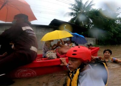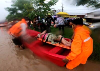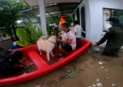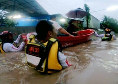 น้ำป่าทะลักเข้าท่วมหมู่ด่านเกวียน กว่า 50 หลังคาเรือน หนักสุดในรอบ 10 ปี หน่วยกู้ภัยนำเรือท้องแบนเร่งอพยพชาวบ้านที่ติดอยู่ในบ้าน