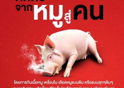 1.รับประทานเนื้อหมู หรือเลือดหมูที่ปรุงสุกเท่านั้น ผ่านความร้อนอย่างน้อย 60-70 องศาเซลเซียส ในเวลา 10 นาที