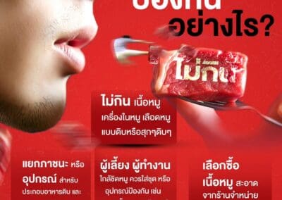 - อาหารปิ้งย่าง ควรใช้อุปกรณ์ในการคีบเนื้อหมูดิบและเนื้อหมูสุกแยกจากกัน และขอให้ยึดหลัก “สุก ร้อน สะอาด”