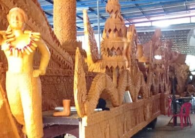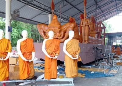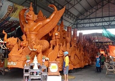 นครราชสีมา-วันนี้ (18 กรกฎาคม 2566) ผู้สื่อข่าวเดินทางไปที่บ้านเลขที่ 172 ม.5 บ้านกอก ต.ในเมือง อ.พิมาย จ.นครราชสีมา พบกับนายวัชระ นาดี ศึกษานิเทศก์ชำนาญการพิเศษ สำนักงานเขตพื้นที่การศึกษาประถมศึกษานครราชสีมา เขต 7 ซึ่งกำลังแกะสลักหุ่นเทียนพรรษารูป “นายพิธา ลิ้มเจริญรัตน์” แคนดิเดต นายกรัฐมนตรีและหัวหน้าพรรคก้าวไกล กับหุ่นเทียนรูป “น.ส.แพทองธาร ชินวัตร หรือ อุ๊งอิ๊ง” แคนดิเดตนายกรัฐมนตรีของพรรคเพื่อไทย โดยหุ่นเทียนทั้งสองมีความสูงประมาณ 160 เซนติเมตร และแกะสลักให้หุ่นของทั้งสองจับมือกัน