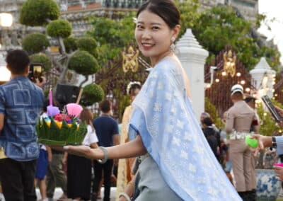 ประชาชน นักท่องเที่ยวจำนวนมาก แต่งไทยไปลอยกระทง ณ วัดอรุณราชวราราม ในงาน “ลอยกระทง