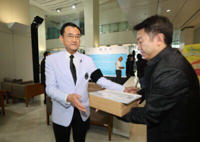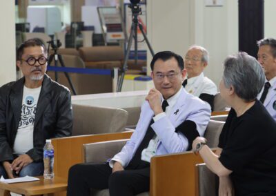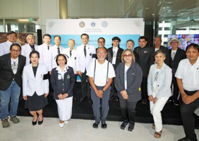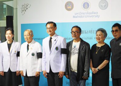 โดยมี ศ.ดร.นพ.อภิชาติ อัศวมงคลกุล คณบดีคณะแพทยศาสตร์ศิริราชพยาบาล มหาวิทยาลัยมหิดล นายธราธิป นัทธีศรี นายกสมาคมนักศึกษาเก่า คณะจิตรกรรม ประติมากรรม และภาพพิมพ์ มหาวิทยาลัยศิลปากร อาจารย์ธนิสร์ ศรีกลิ่นดี ศิลปินแห่งชาติ คุณสุจินตนา จรรยาทิพย์สกุล ประธาน มูลนิธิเก้ายั่งยืน ประธาน JS Arts Gallery คณะแพทย์ คณะศิลปิน ร่วมแถลงข่าว