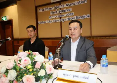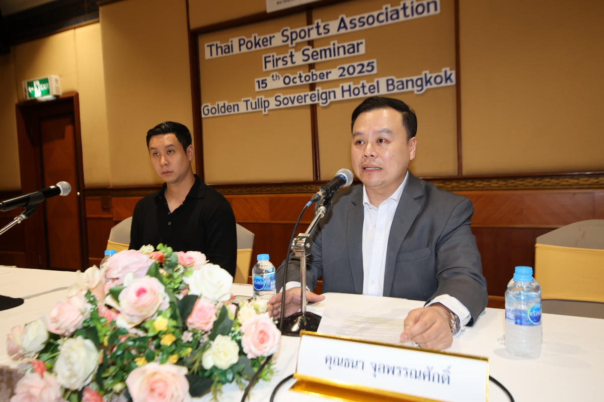 เมื่อวันที่ 15 ตุลาคม 2568 เวลา 14.00 น. สมาคมกีฬาโป๊กเกอร์ประเทศไทย (Thai Poker Sports Association) ได้จัดงานสัมมนาครั้งแรกในชื่อ “Thai Poker Sports Association First Seminar” ณ ห้องประชุมทานตะวัน โรงแรมโกลเด้น ทิวลิป ซอฟเฟอริน กรุงเทพฯ