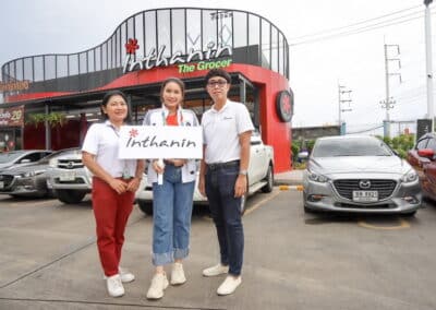 นางสาวอัญญรินทร์ วงศ์อัครพัฒนา ผู้อำนายการฝ่ายสิทธประโยชน์สโมสรนครราชสีมา มาสด้า เอฟซี,ม.ล.โอรัส เทวกุล ผู้แทนจาก บริษัทหลักทรัพย์ SBI Thai online,นายเอกรัฐ สร้อยอินทร์ ประธานกรรมการบริษัท อินฟินิต จำกัด มาร่วมงาน