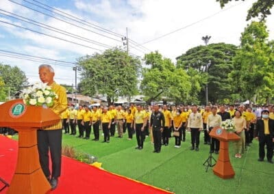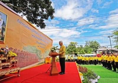 นายสุวัจน์ กล่าวว่า เนื่องในโอกาสวันเฉลิมพระชนมพรรษา พระบาทสมเด็จพระวชิรเกล้าเจ้าอยู่หัว ถือว่าเป็นวันมหามงคล อยากให้พสกนิกรชาวไทยทุกท่านได้ร่วมกันทำความดี ถวายความจงรักภักดี อย่างเช่นที่ เทศบาลนครนครราชสีมา ร่วมกับหน่วยงานราชการ ภาคเอกชน พี่น้องประชาชนในเขตนครเมืองนครราชสีมา ได้ร่วมแรงร่วมใจกันในการอนุรักษ์พื้นที่เมืองเก่าและคูเมืองนครราชสีมา ซึ่งสร้างมาตั้งแต่พระบรมไตรโลกนาถ เมื่อ 555 ปีที่สร้างเมืองโคราช ต่อมาในรัชสมัยสมเด็จพระนารายณ์มหาราช ประมาณ 360 ปี ได้ให้วิศวะกรชาวฝรั่งเศส เดอ ลามาร์ เป็นผู้ออกแบบวางผังเมือง มีลักษณะเป็นสี่เหลี่ยม ตัดถนน สร้างกำแพงเมือง มีสระน้ำ เป็นโครงสร้างเมืองตั้งแต่สมัยที่ความมั่นคงทางด้านการป้องกันประเทศยังอยู่ เมืองโคราชเป็นเมืองที่พี่น้องประชาชนต้องภาคภูมิใจว่าทันสมัยมาแล้วตั้ง 350 กว่าปี และเก่าแก่มาแล้ว 555 ปี