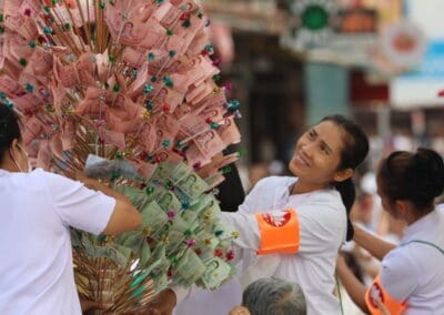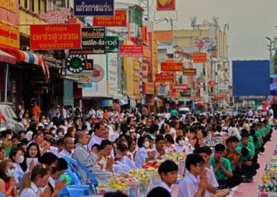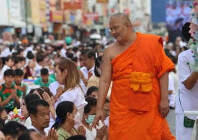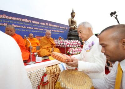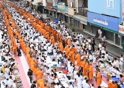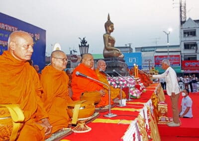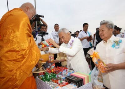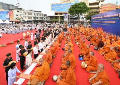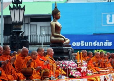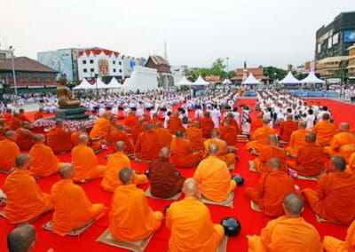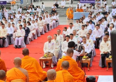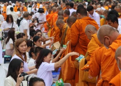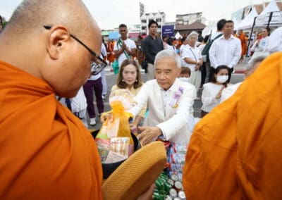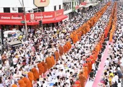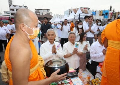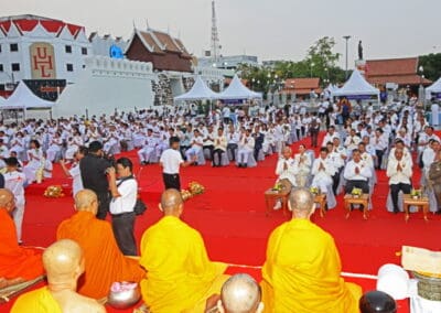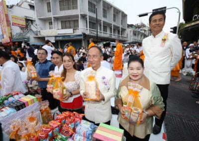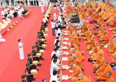ทั้งนี้ ภายในงานพุทธศาสนิกชนได้ร่วมกันกล่าวคำแสดงตนเป็นพุทธมามกะ อาราธนาศีล 5 บำเพ็ญทักษิณานุปทาน ทอดผ้าบังสุกุล คณะสงฆ์เจริญพระพุทธมนต์สมโภชเมืองนครราชสีมา จากนั้นเป็นพิธีตักบาตรพระสงฆ์ 10,000 รูป และอปโลกน์สังฆทาน เพื่อนำข้าวสารอาหารแห้งที่ได้จากการบิณฑบาตในครั้งนี้ไปบรรเทาความเดือดร้อนของคณะสงฆ์ 323 วัดใน 4 จังหวัดภาคใต้ พร้อมทั้งช่วยเหลือครูและทหารที่ปฏิบัติหน้าที่อยู่ในพื้นที่เสี่ยงภัยภาคใต้ และมอบช่วยเหลือประชาชนในพื้นที่จังหวัดนครราชสีมาที่ประสบความเดือดร้อนจากภัยต่างๆ เป็นสาธารณะสงเคราะห์