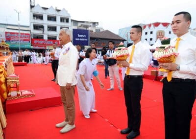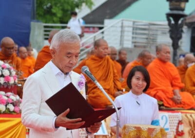 “ขออนุโมทนาบุญกับผู้มีเกียรติทุกท่าน ที่ทําให้เกิดภาพประวัติศาสตร์ ที่งดงามของจังหวัดนครราชสีมาในวันนี้”นายสุวัจน์ กล่าว
